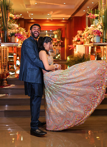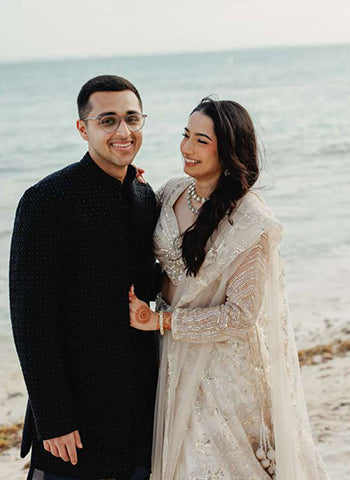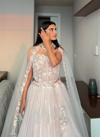 Sequined georgette shirt with centre cut and embroidered details with Sharara and organza dupatta with golden border....